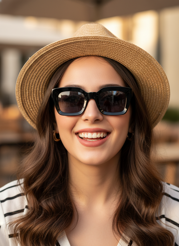 این شیشهها فقط برای محافظت از چشمان شما در برابر آفتاب نیست – رنگ دودیِ عمیق و مدرن، حالوهوایی لاکچری و اسرارآمیز به چهره میبخشد و همزمان دید راحت و بدون خیرگی را تضمین میکند.✔️ طراحیِ مُدرنِ سلین برای زنِ امروزی