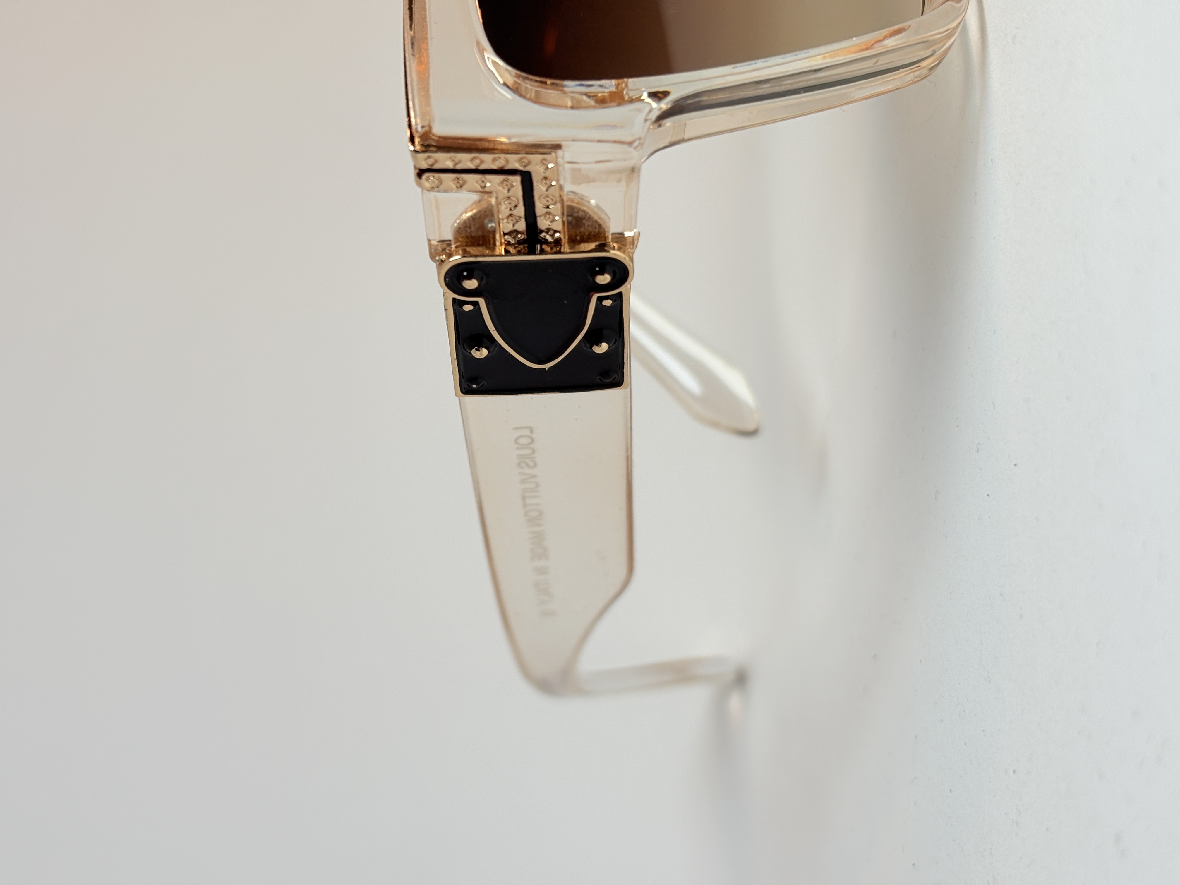این عینک آفتابی یک قطعه لوکس انحصاری است که به قوانین معمول مردانه پشت میکند. ترکیب غیرمتعارف فریم مشکی مات