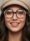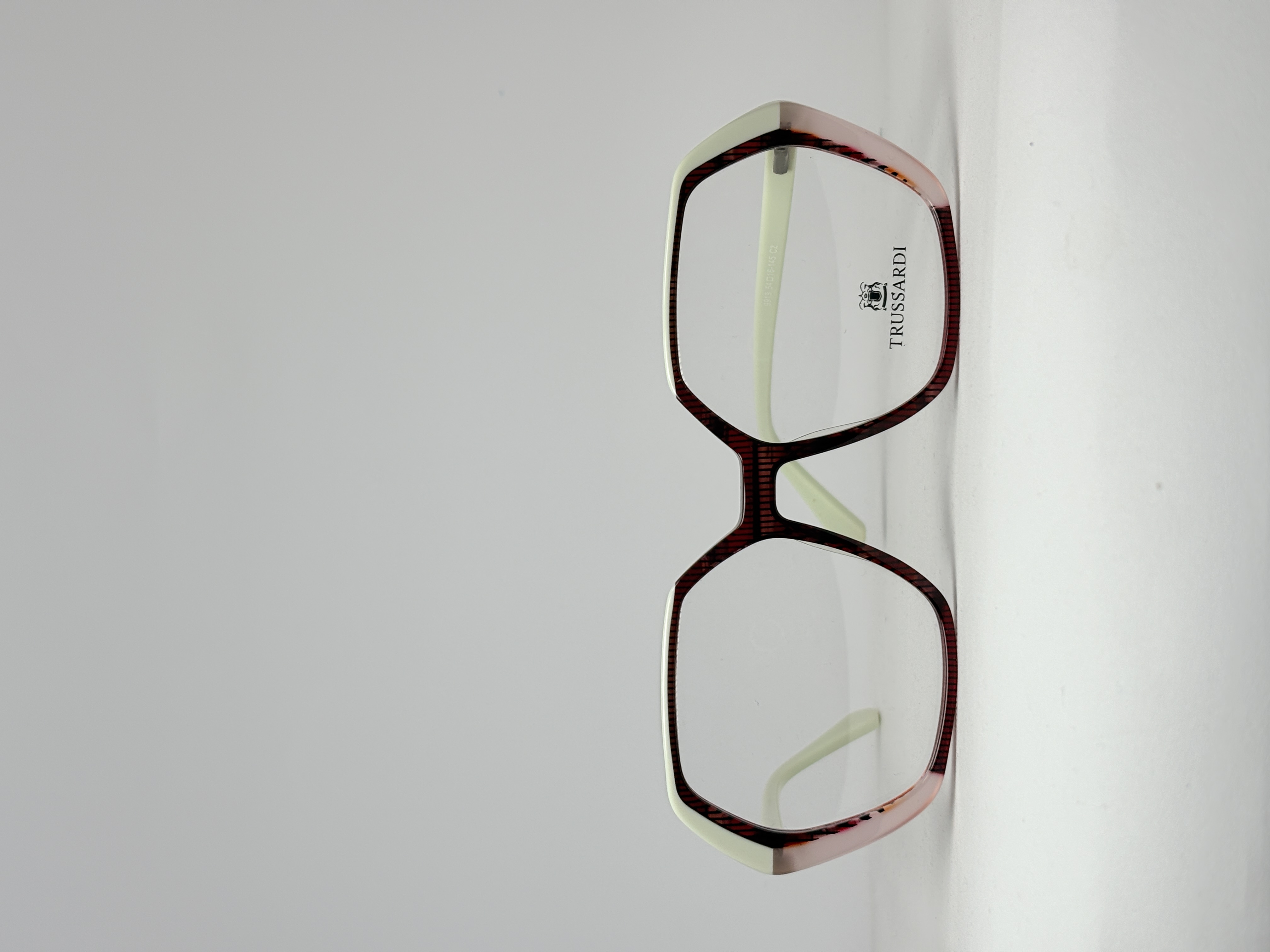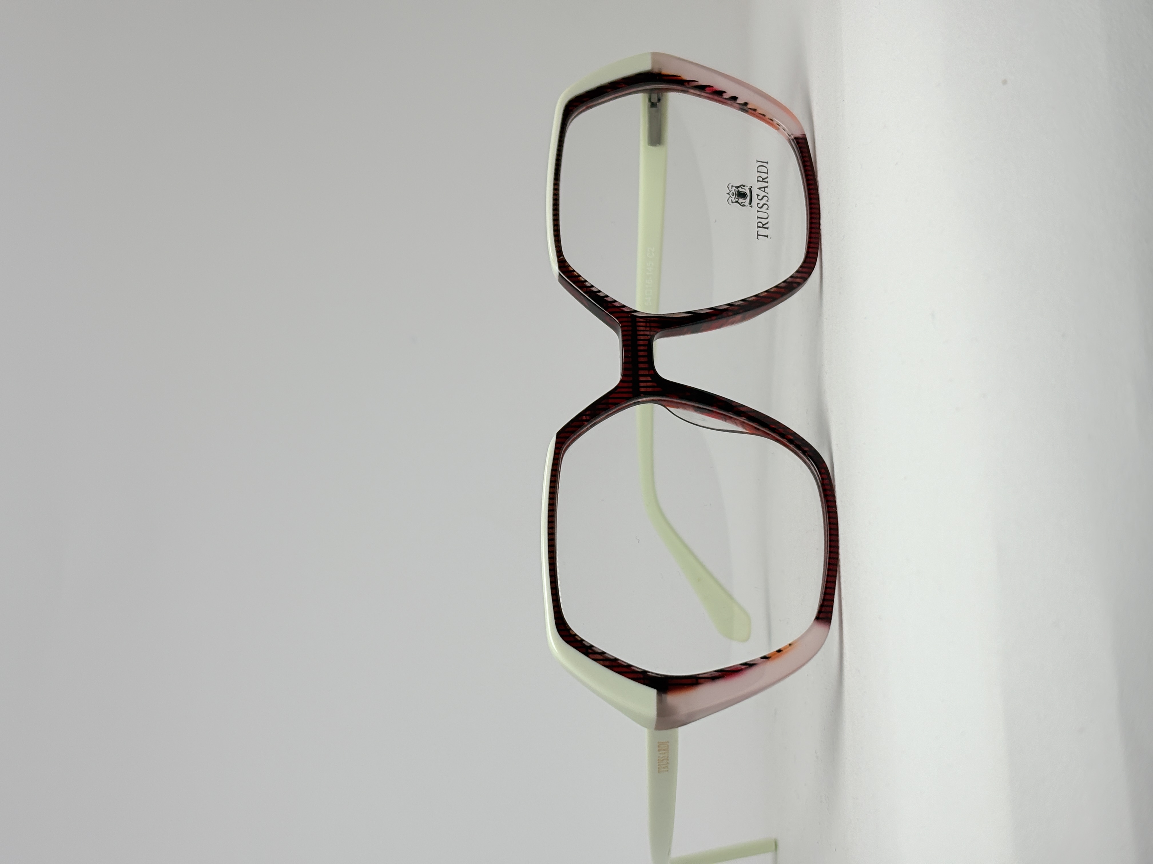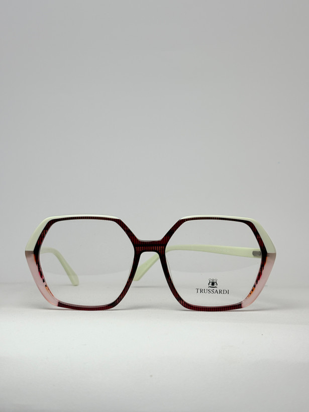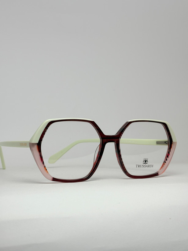 این یه عینک طبی زنونهست با طراحی چند ضلعی که هم خاصه هم شیک. ترکیب رنگش کرم و زرشکیه، یعنی هم دخترونهست هم باحال، هم میتونی بزاری برای روزای معمولی، هم برای مهمونیهای خاص!