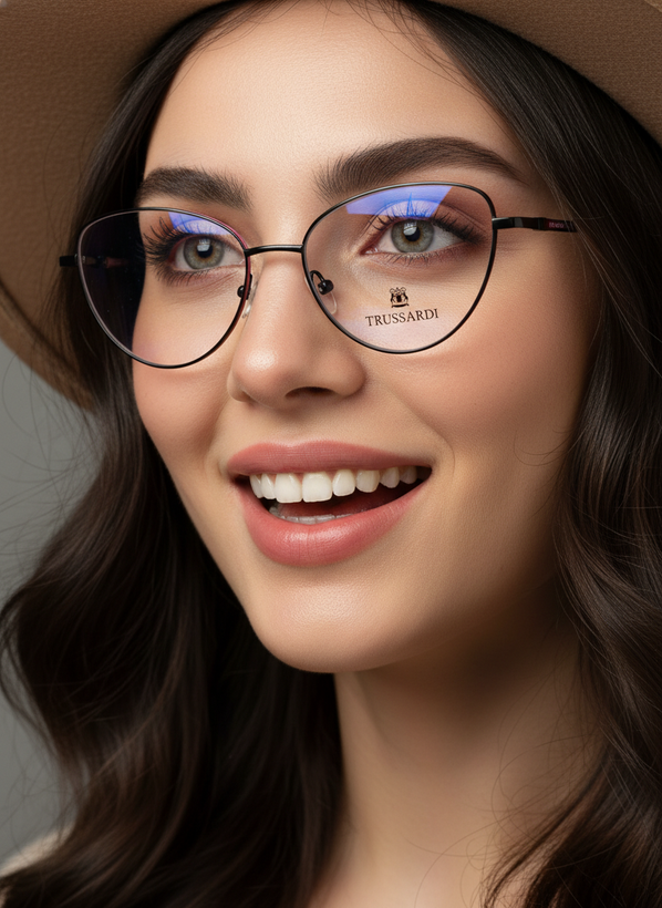 این عینک رو نگاه کن. فرمش گربهایه، همون فرمی که میاد گوشه چشماتو میکشه بالا، چشماتو درشتتر و بامزهتر نشون میده