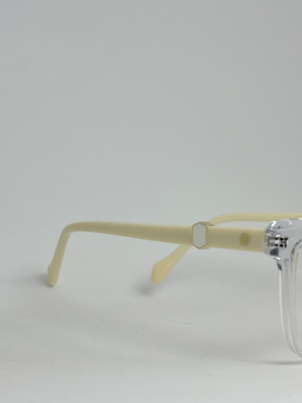 وای که چه ترکیبی! فریم شیشهای انقدر خوشگل و ظریفه که انگار داری یه اثر هنری رو به چشم میزنی! دستههای کرم رنگ خاص هم که دیگه شاهکار اصلیه! این ترکیب انقدر باحال و خاصه که هر کی ببینه میگه وای این عینک از کجاست؟!