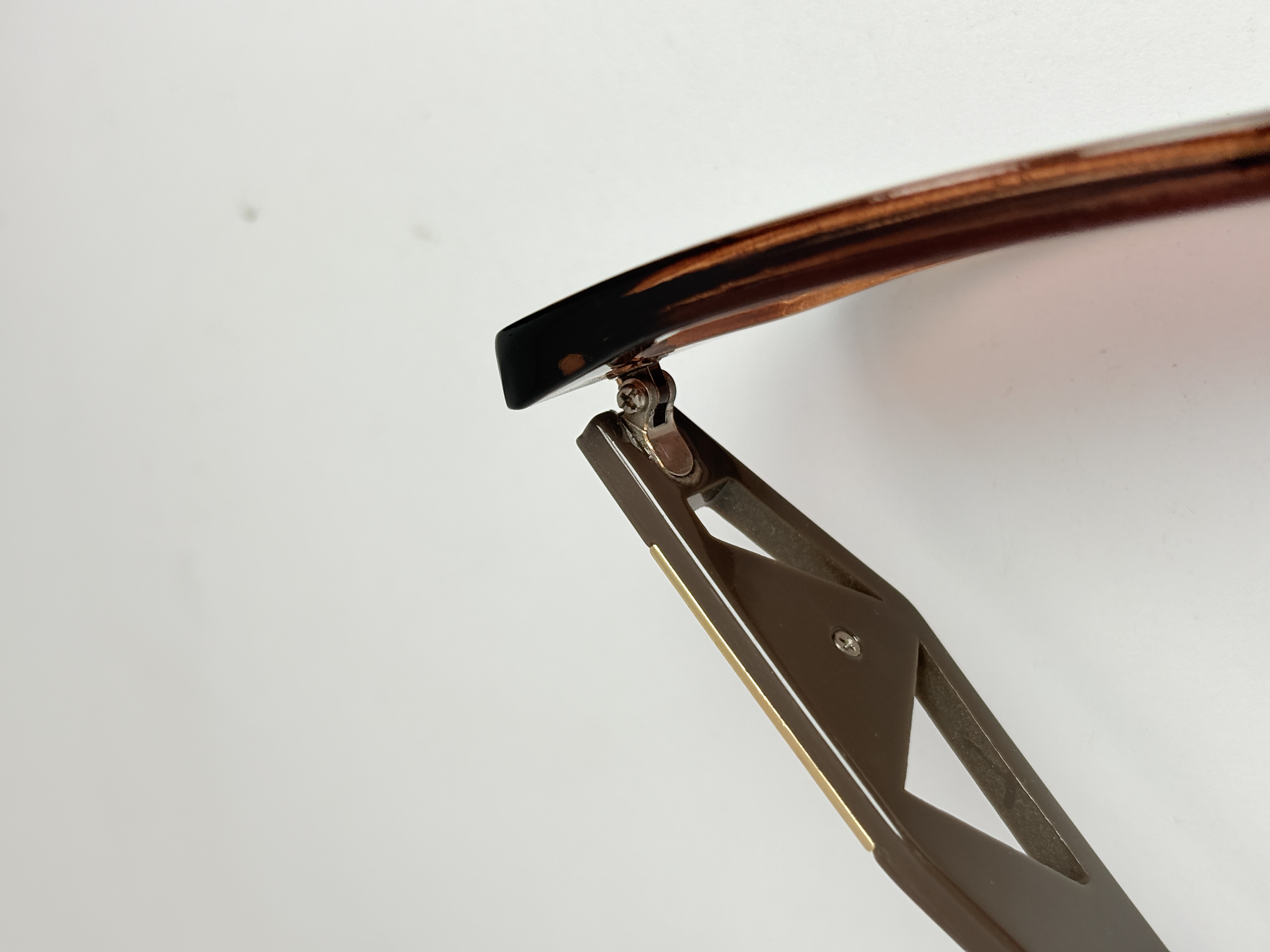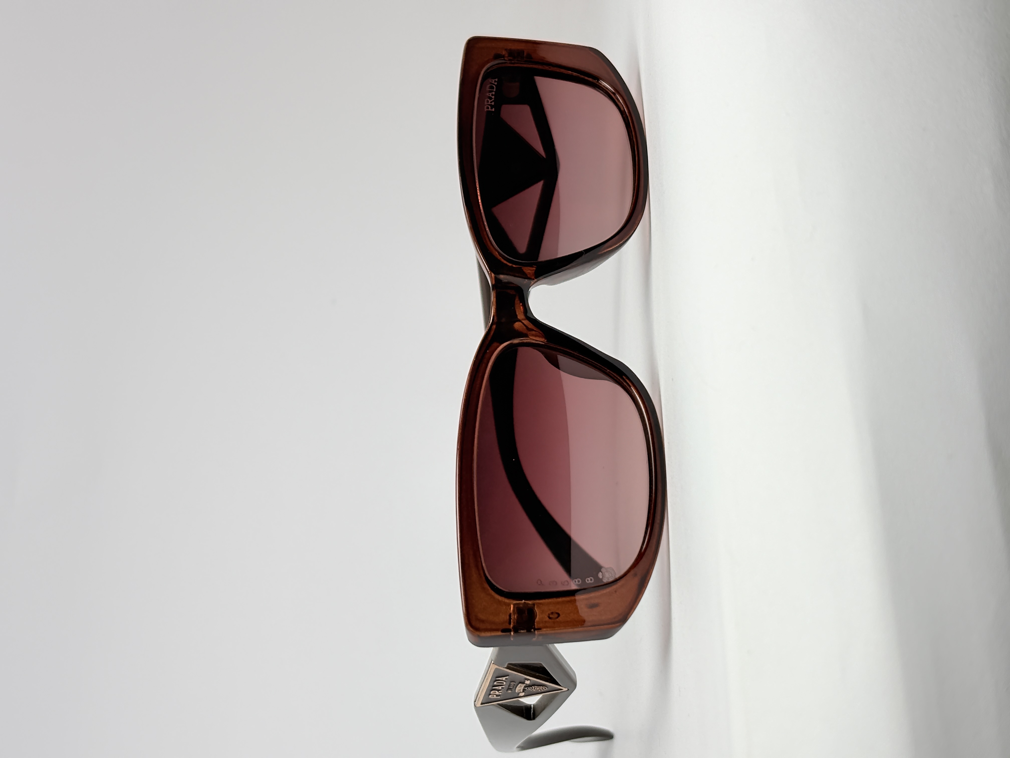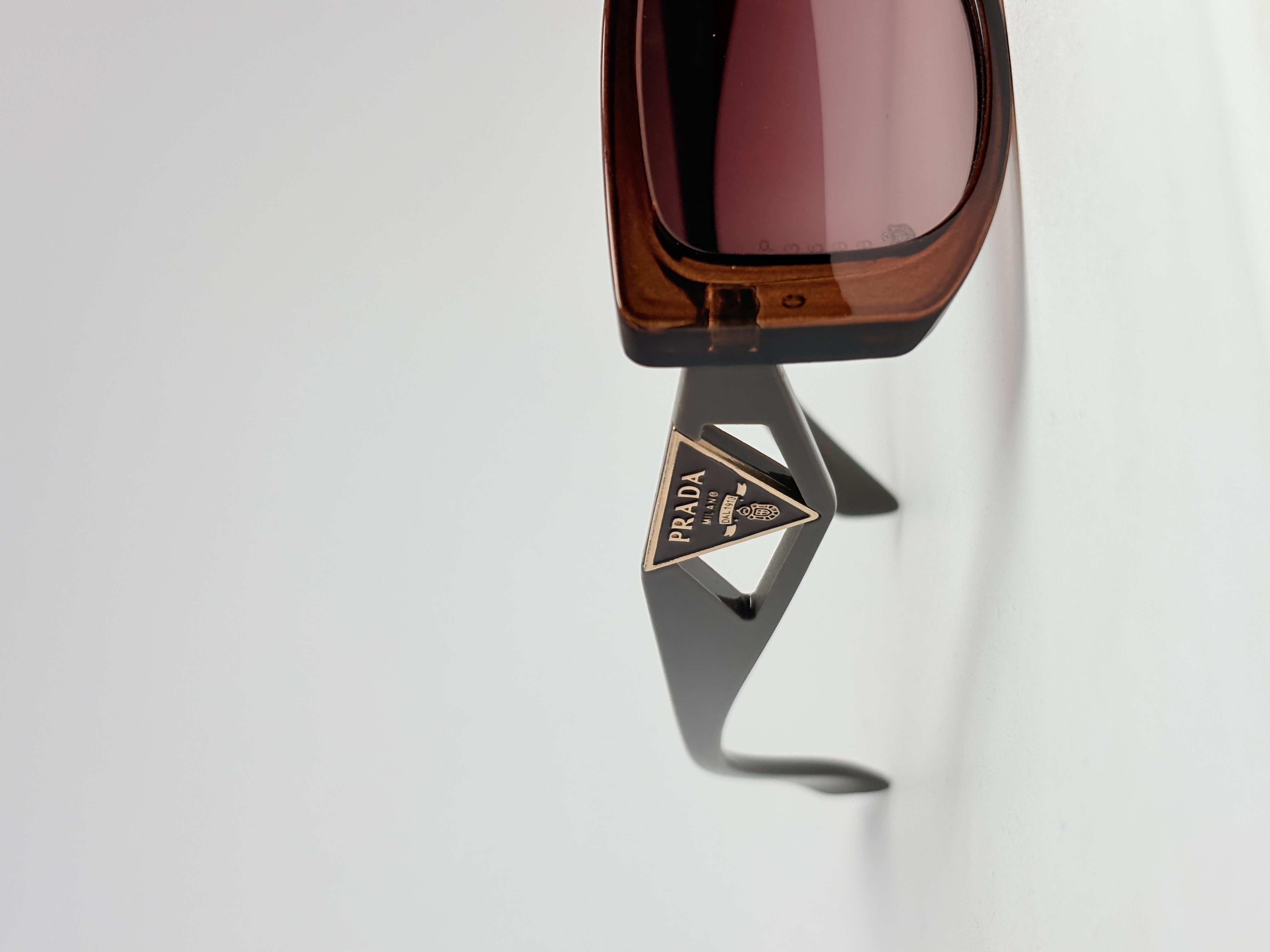 یک عینک فشن و خاص با طراحی دسته پرادا با رنگ قهوه ای جذاب سال